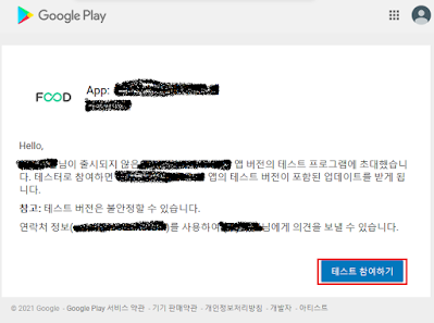 - 등록된 테스터는 ‘테스트 참여 방법’ 에서 알려주는 link 로 접속해서 app 을 다운로드 할 수 있다.